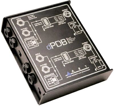 Пассивный двухканальный DI-бокс (dual passive Direct Box) dPDB™ имеет два высококачественных согласующих трансформатора в портативном корпусе. Это надежный DI-бокс для подключения выходов электронных музыкальных инструментов (или любых других аудио источников) к симметричным входам микшерных пультов и другим устройствам с симметричными входами. Это также позволяет подключать источник сигнала одновременно подключая его к инструментальному усилителю и к микшеру.