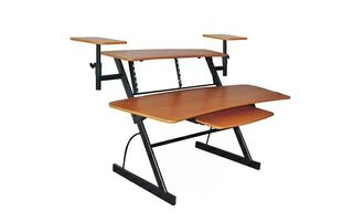 Стол - рэк студийный с регулируемой высотой столешницы, два съемных регулируемых по высоте крепления для контрольных мониторов. Шасси - метал, столешница - ламинированное MDF.